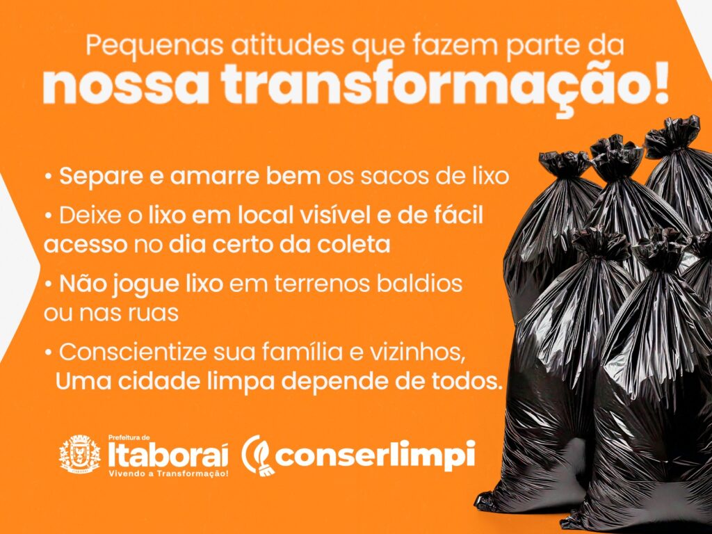 A limpeza da cidade é um compromisso que depende da união de todos. Com esse propósito, a Conserlimpi, está reforçando algumas orientações simples, mas fundamentais, para garantir que a coleta de lixo seja mais eficiente e que o município permaneça cada vez mais limpo e agradável para a população.